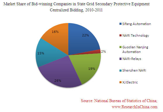 Market Share of Bid-winning Companies in State Grid Secondary Protective Equipment Centralized Bidding, 2010-2011