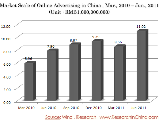 Market Scale of Online Advertising in China , Mar., 2010 – Jun., 2011