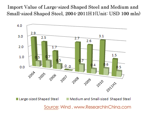 Import Value of Large-sized Shaped Steel and Medium and Small-sized Shaped Steel, 2004-2011H1