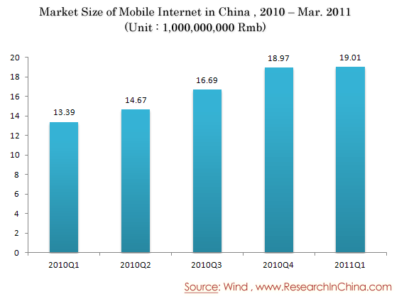 Market Size of Mobile Internet in China , 2010 – Mar. 2011