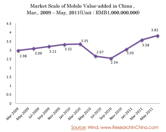 Market Scale of Mobile Value-added in China , Mar., 2009 – May, 2011