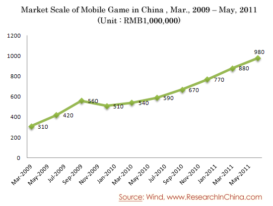 Market Scale of Mobile Game in China , Mar., 2009 – May, 2011