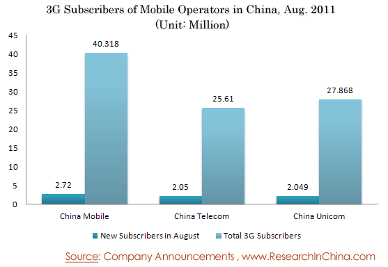 3G Subscribers of Mobile Operators in China, Aug. 2011