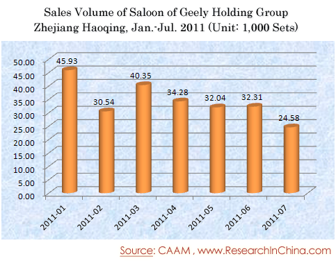 Sales Volume of Saloon of Geely Holding Group Zhejiang Haoqing, Jan.-Jul. 2011