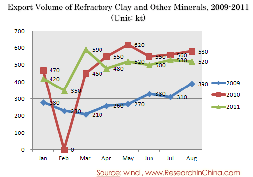 Export Volume of Refractory Clay and Other Minerals, 2009-2011
