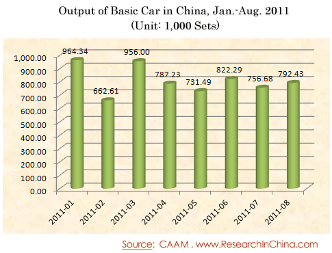 Output of Basic Car in China, Jan.-Aug. 2011