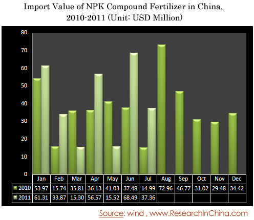 Import Value of NPK Compound Fertilizer in China, 2010-2011
