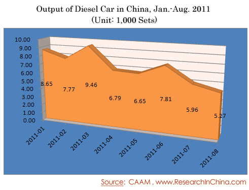 Output of Diesel Car in China, Jan.-Aug. 2011