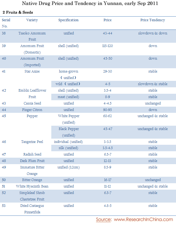 Native Drug Price and Tendency in Yunnan, early Sep 2011(2)