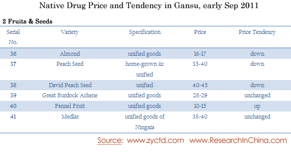 Native Drug Price and Tendency in Gansu, early Sep 2011(2)