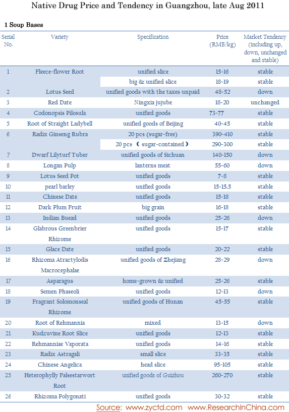 Native Drug Price and Tendency in Guangzhou, late Aug 2011(1)