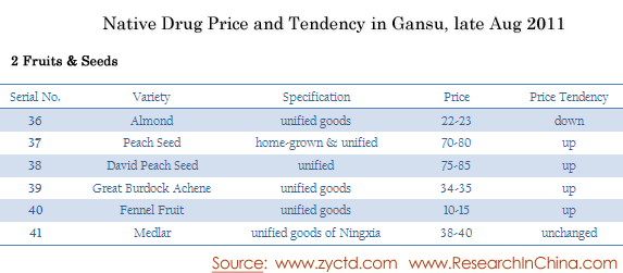 Native Drug Price and Tendency in Gansu, late Aug 2011(2)
