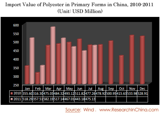 Import Value of Polyester in Primary Forms in China, 2010-2011