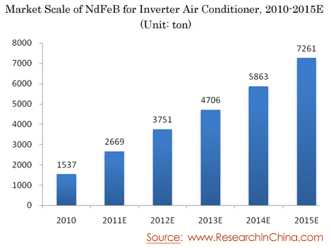 Market Scale of NdFeB for Inverter Air Conditioner, 2010-2015E