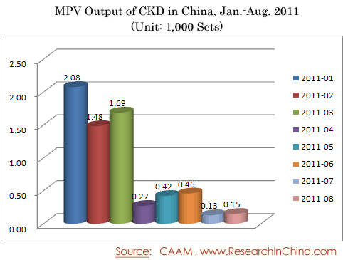 MPV Output of CKD in China, Jan.-Aug. 2011