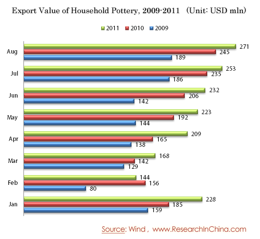 Export Value of Household Pottery, 2009-2011