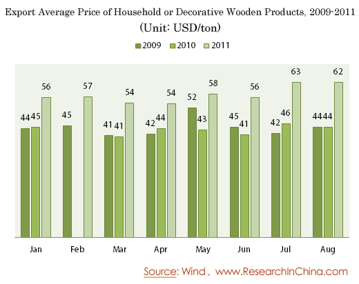 Export Average Price of Household or Decorative Wooden Products, 2009-2011