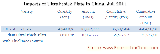 Imports of Ultral-thick Plate in China, Jul. 2011