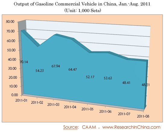 Output of Gasoline Commercial Vehicle in China, Jan.-Aug. 2011