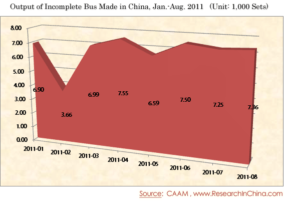 Output of Incomplete Bus Made in China, Jan.-Aug. 2011