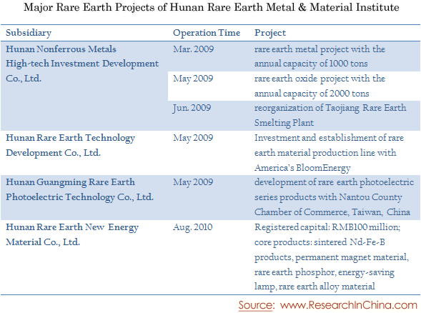 Major Rare Earth Projects of Hunan Rare Earth Metal & Material Institute