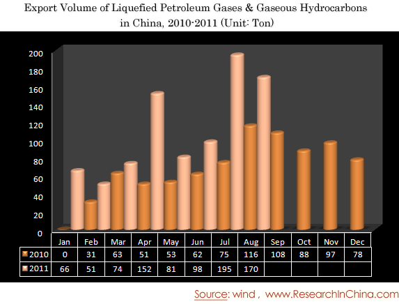 Export Volume of Liquefied Petroleum Gases & Gaseous Hydrocarbons in China, 2010-2011