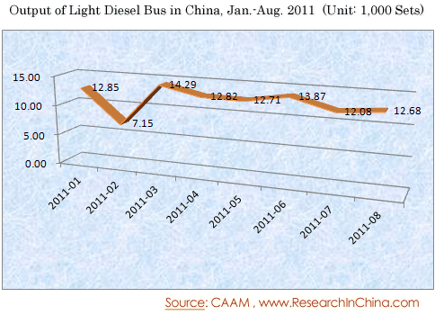 Output of Light Diesel Bus in China, Jan.-Aug. 2011