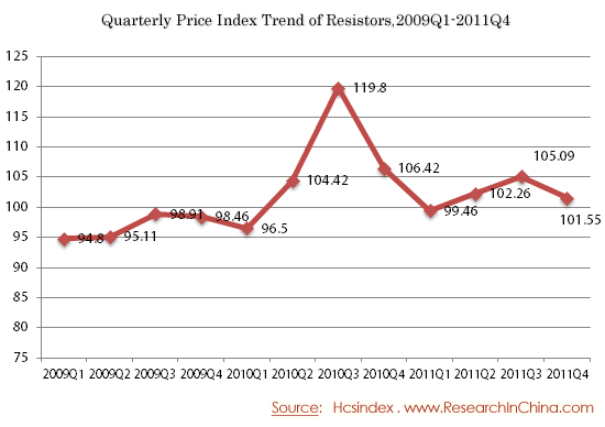 Quarterly Price Index Trend of Resistors,2009Q1-2011Q4