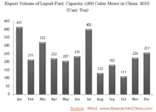 Export Volume of Liquid Fuel, Capacity ≤300 Cubic Meter in China, 2010