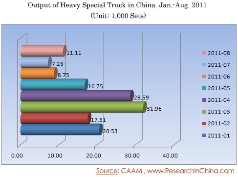 Output of Heavy Special Truck in China, Jan.-Aug. 2011