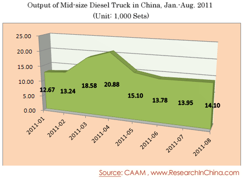Output of Mid-size Diesel Truck in China, Jan.-Aug. 2011