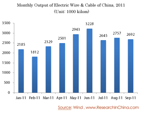 Monthly Output of Electric Wire & Cable of China, 2011