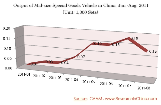 Output of Mid-size Special Goods Vehicle in China, Jan.-Aug. 2011