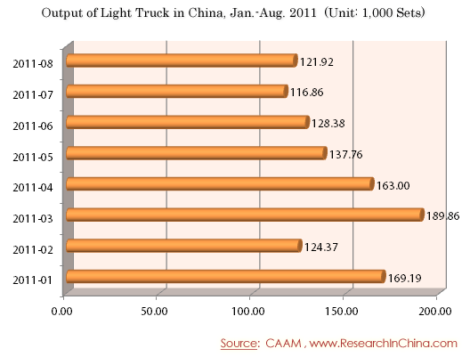 Output of Mini General Truck in China, Jan.-Aug. 2011