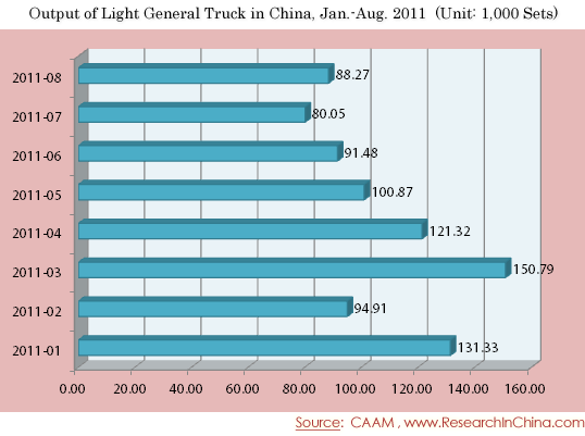 Output of Light General Truck in China, Jan.-Aug. 2011