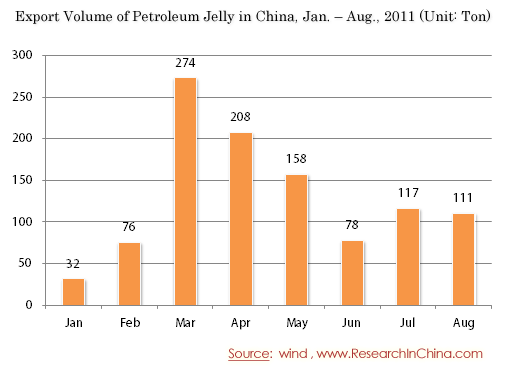Export Volume of Petroleum Jelly in China, Jan. – Aug., 2011