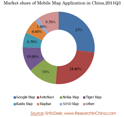 Total Number of Accounts of Mobile Map Application in China,2011Q1-Q3(Unit:1,000,000)