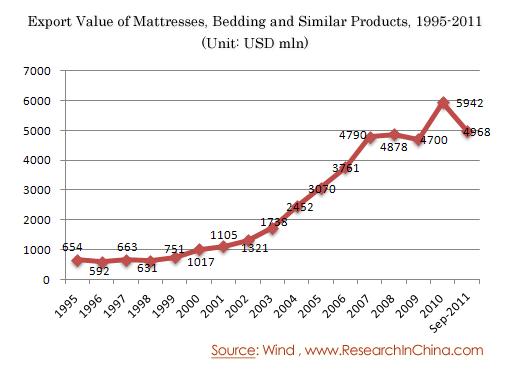 Export Value of Mattresses, Bedding and Similar Products, 1995-2011