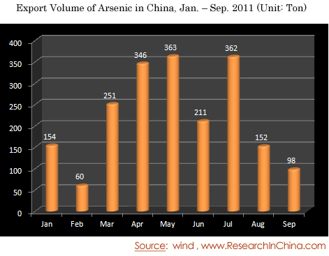 Export Volume of Arsenic in China, Jan. – Sep. 2011