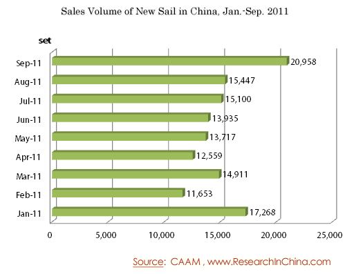 Sales Volume of New Sail in China, Jan.-Sep. 2011