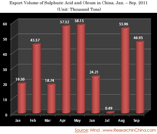 Export Volume of Sulphuric Acid and Oleum in China, Jan. – Sep. 2011