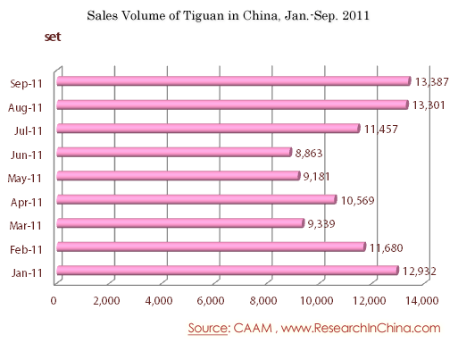 Sales Volume of Tiguan in China, Jan.-Sep. 2011
