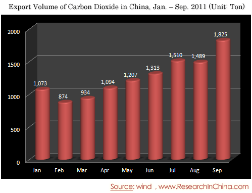 Export Volume of Carbon Dioxide in China, Jan. – Sep. 2011