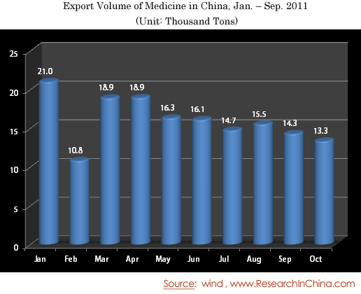 Export Volume of Medicine in China, Jan. – Sep. 2011