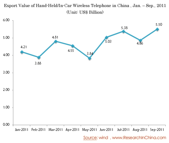 Export Value of Hand-Held/In-Car Wireless Telephone in China , Jan. – Sep., 2011