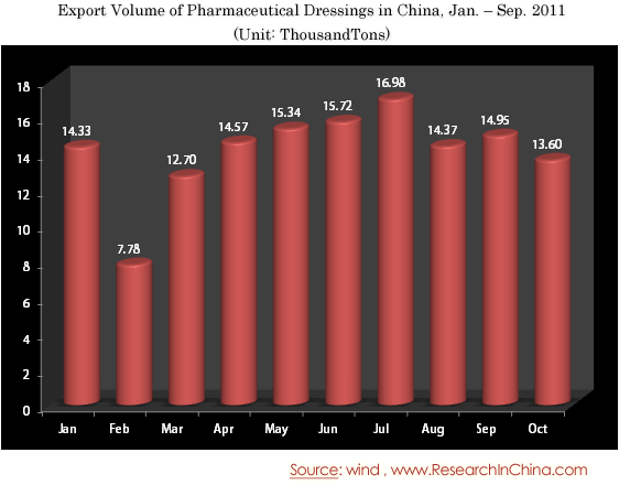 Export Volume of Pharmaceutical Dressings in China, Jan. – Sep. 2011