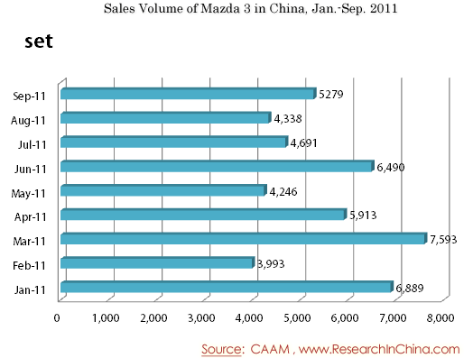 Sales Volume of Mazda 3 in China, Jan.-Sep. 2011