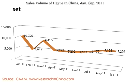 Sales Volume of Heyue in China, Jan.-Sep. 2011