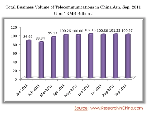 Total Business Volume of Telecommunications in China,Jan.-Sep.,2011