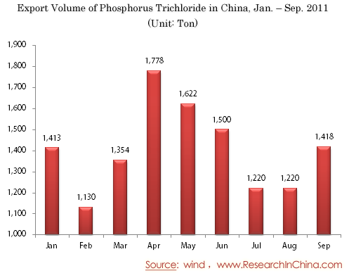 Export Volume of Phosphorus Trichloride in China, Jan. – Sep. 2011